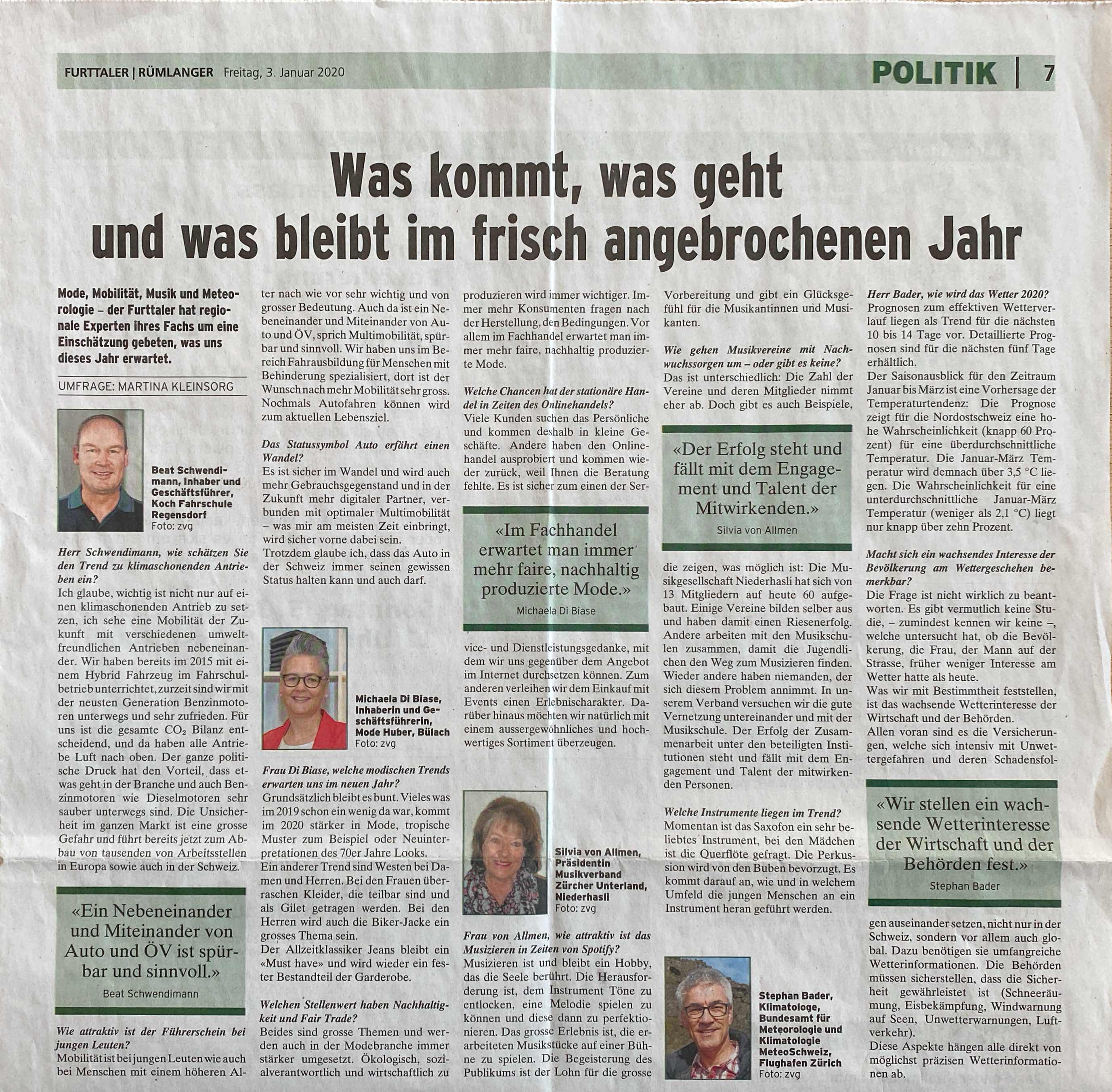 Beat Schwendimann äussert sich zum Thema Mobilität der Zukunft. Der Artikel war am 03.Januar 2020 im Furttaler.