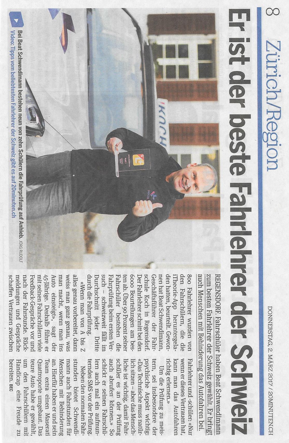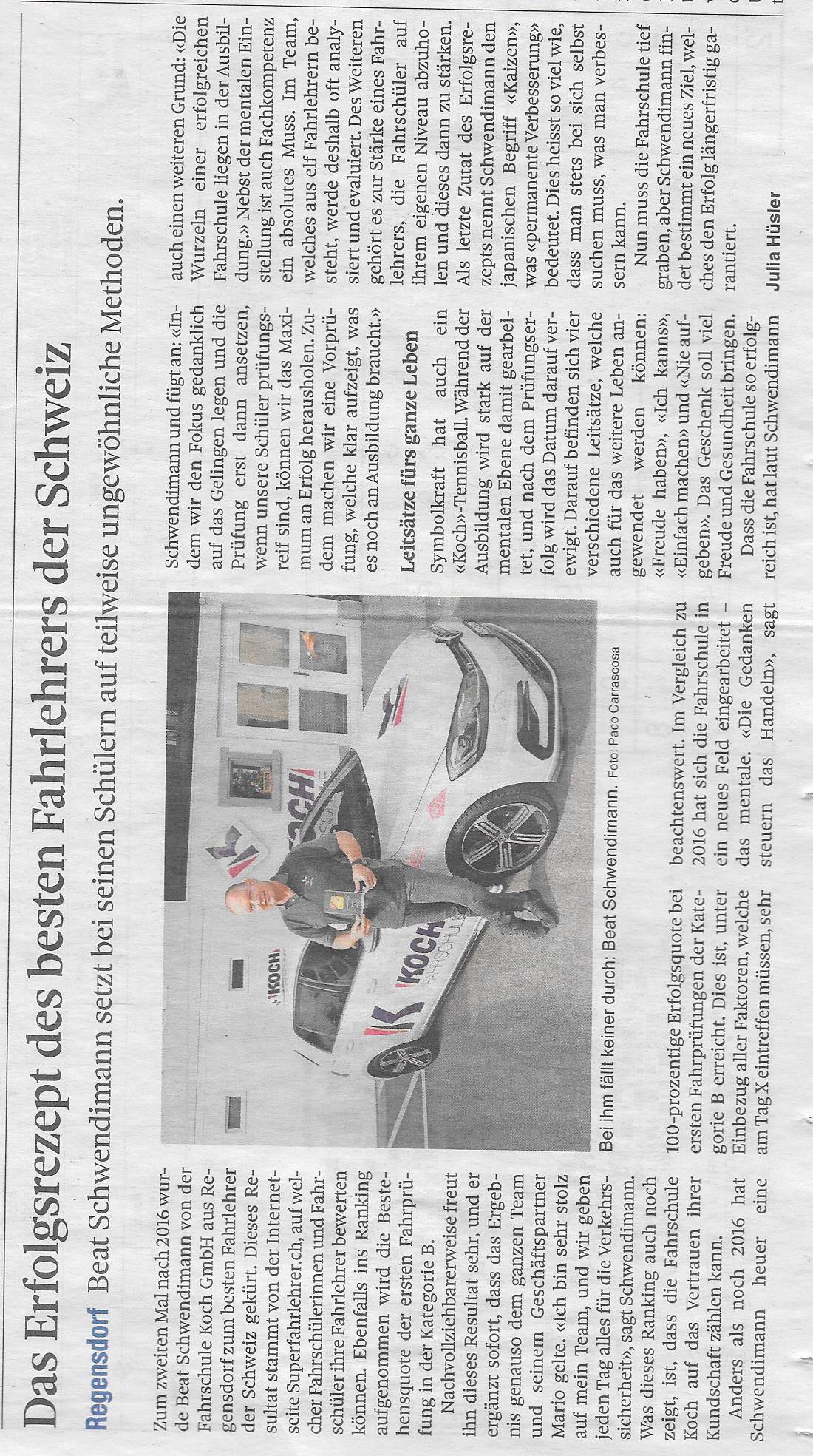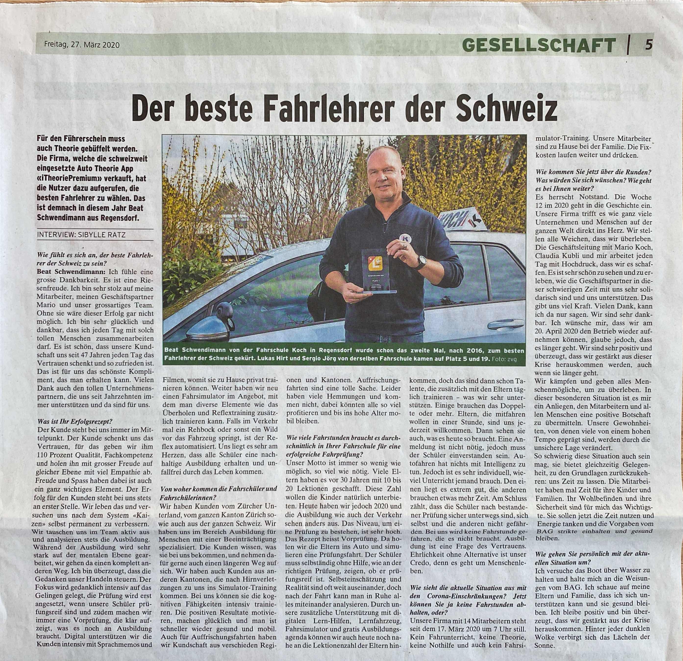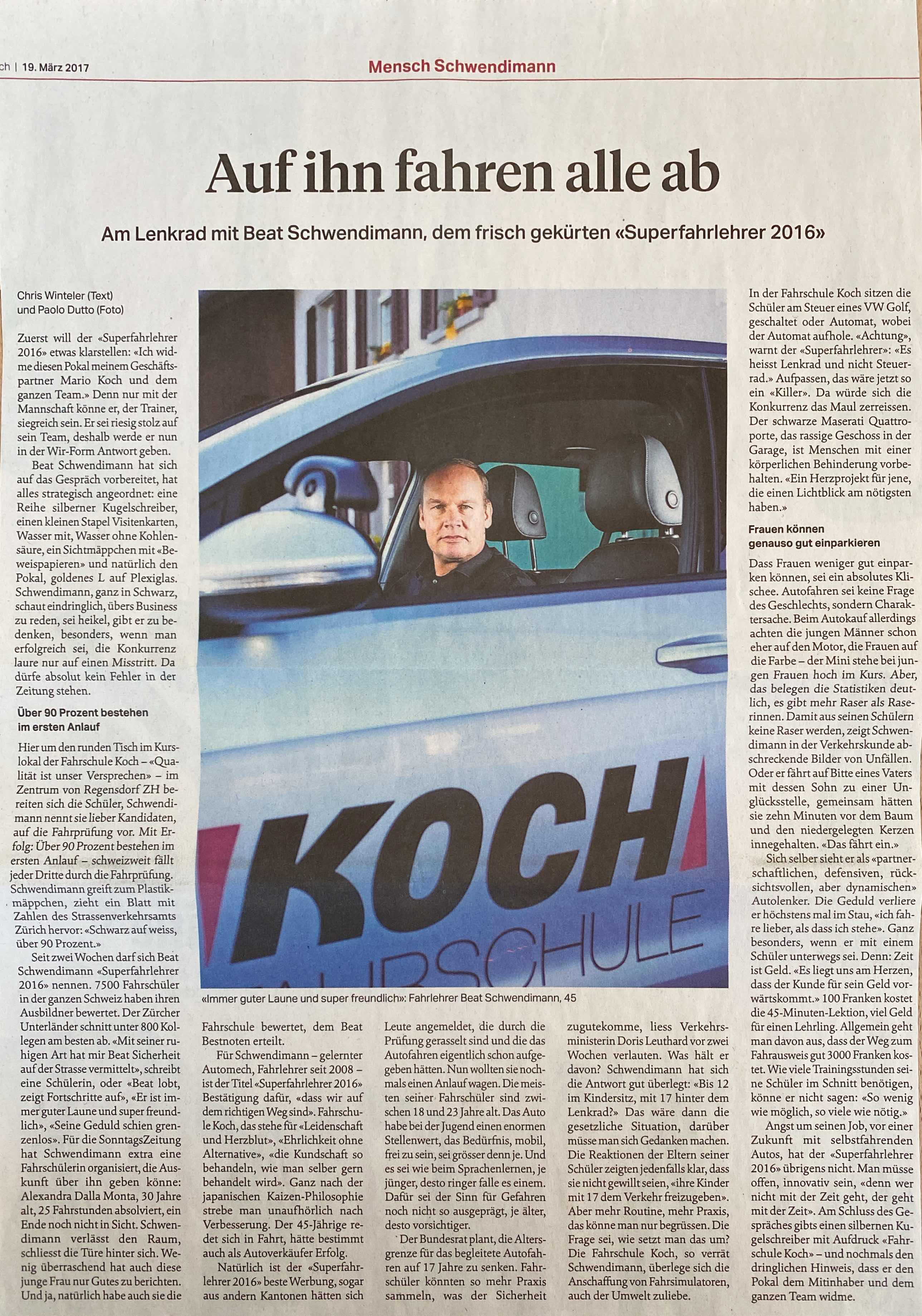 Beat Schwendimann gewinnt im Jahr 2016 die Wahl des Superfahrlehrers. Hier der äussert spannende Bericht von der Sonntagszeitung.
