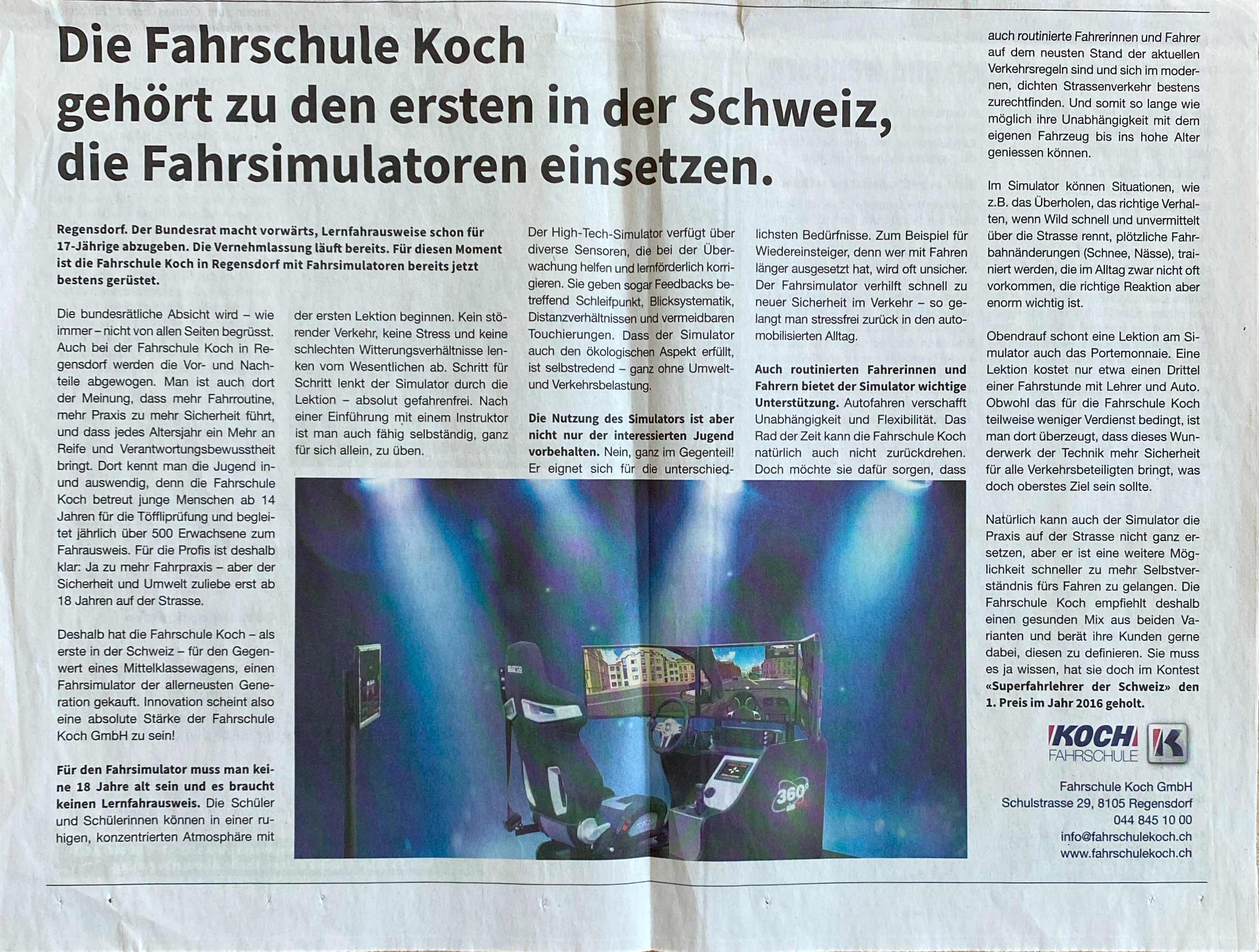 Ganz neu in der Schweiz. Die Fahrschule Koch setzt auf Simulatorausbildung. Mit Erfolg!