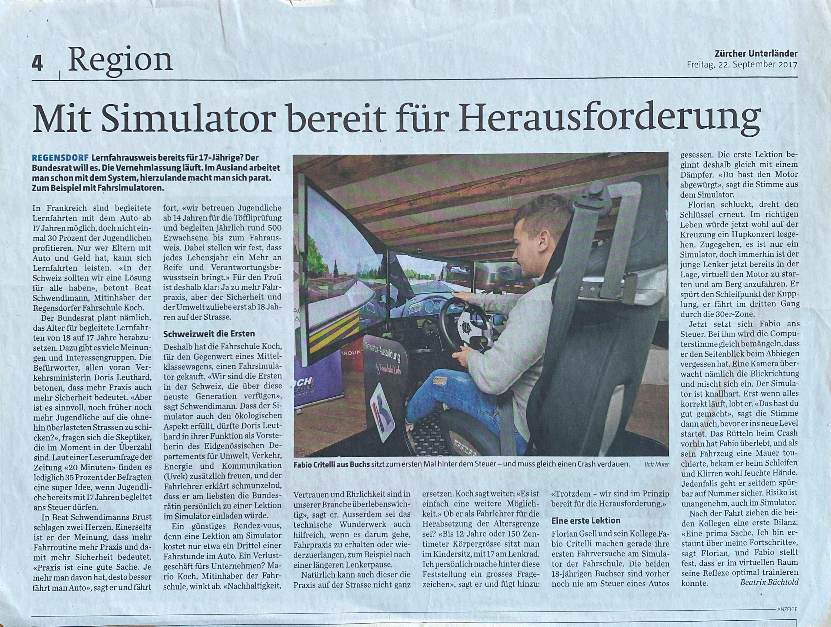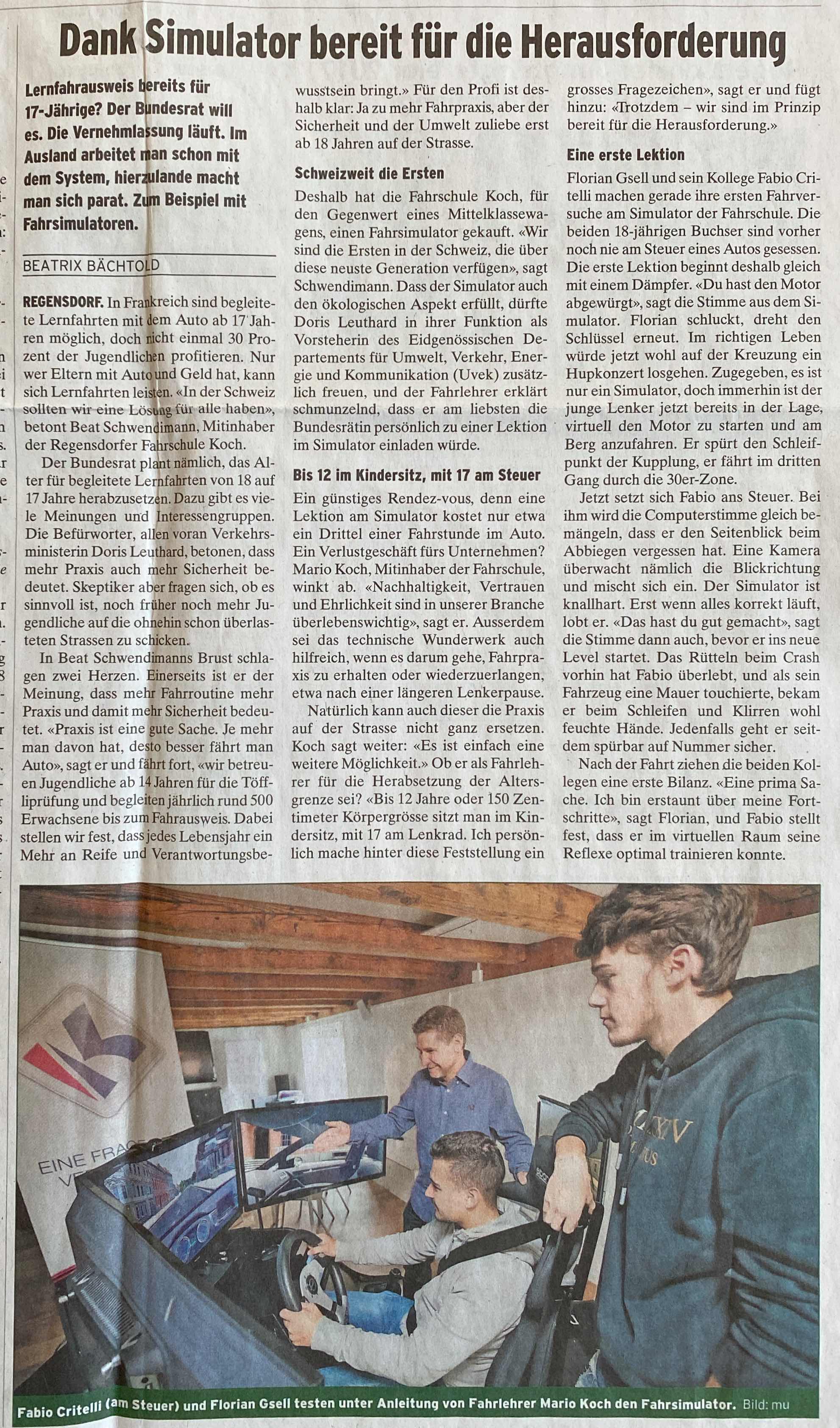 Die Fahrschule Koch macht sich bereit für das Fahren mit 17. Als erste Fahrschule der Schweiz mit Simulator.
