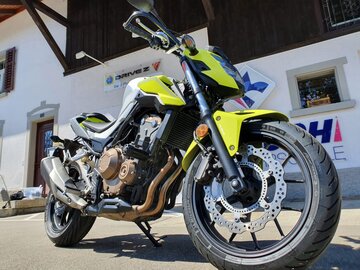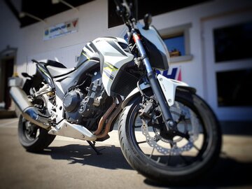 Mit dieser Honda CB 500 F bist du bestens bedient für die Motorradausbildung. Sie ist leicht, wendig und nicht allzu hoch. Mit einem modernen ABS ausgestattet und sehr bequem für viele Lernkilometer. Mit dem 35KW-Motor kannst du dieses Jahr noch die Kat. A beschränkte Prüfung absolvieren. Du kannst bei uns jederzeit eine Sitzprobe oder eine Einführungslektion buchen.