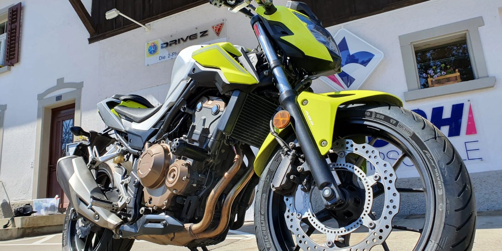 Mit dieser Honda CB 500 F bist du bestens bedient für die Motorradausbildung. Sie ist leicht, wendig und nicht allzu hoch. Mit einem modernen ABS ausgestattet und sehr bequem für viele Lernkilometer. Mit dem 35KW-Motor kannst du dieses Jahr noch die grosse Prüfung absolvieren. Du kannst bei uns jederzeit eine Sitzprobe oder eine Einführungslektion buchen.